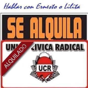 Por su parte, subió a las redes sociales polémicos fotomontajes de Carrió junto a Macri, Sanz inflando globos delPRO y una foto de la UCR bajo el lema "alquilado".